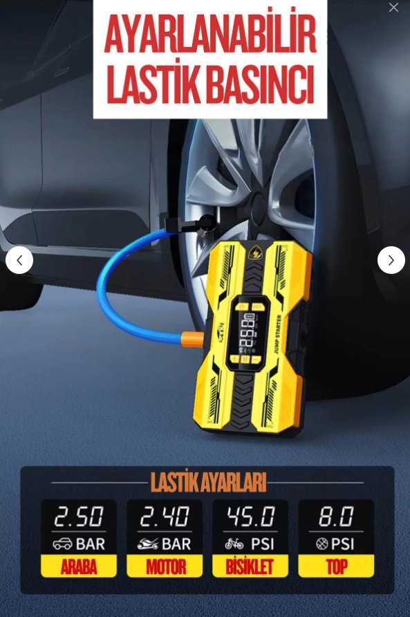 Bu kompakt cihaz; akü takviye cihazı, dijital lastik kompresörü, powerbank ve LED aydınlatma özelliklerini tek bir üründe birleştirir.