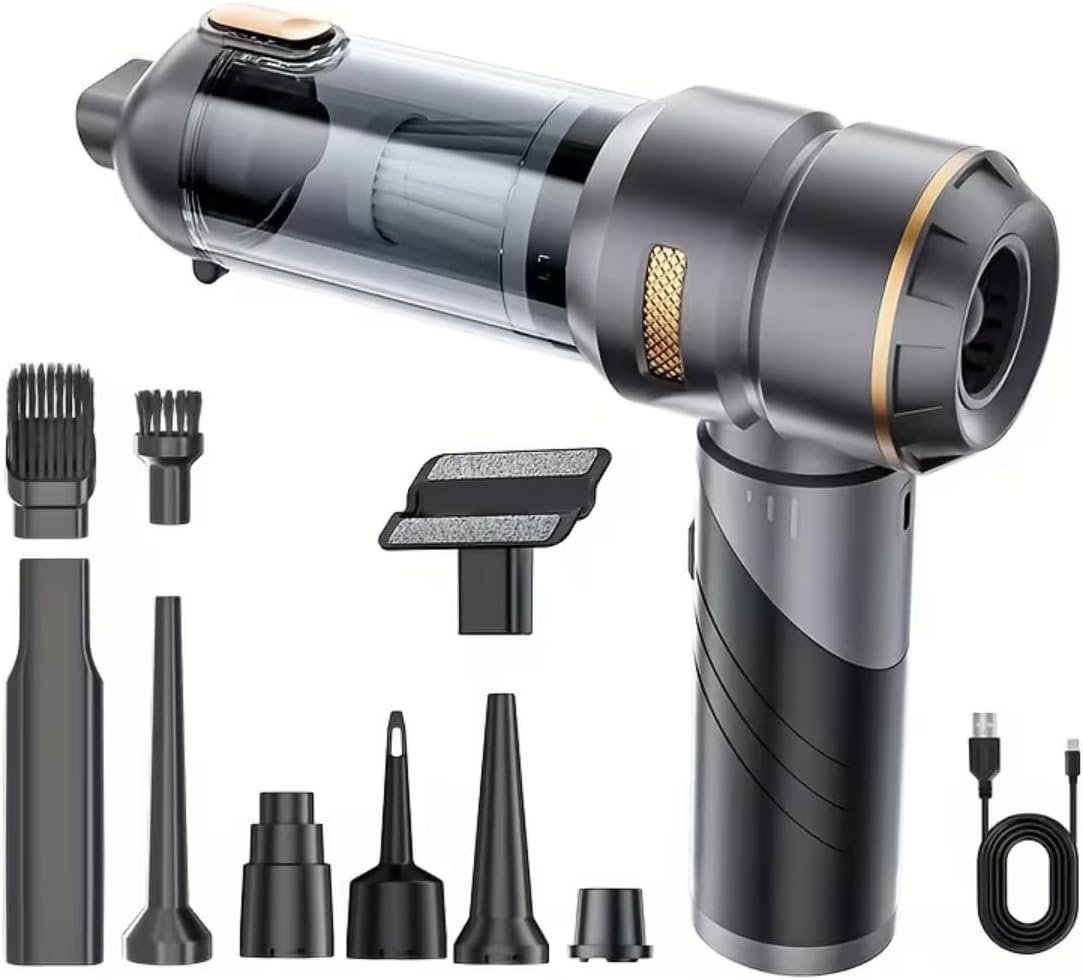 Aracınızda, evinizde veya ofisinizde hızlı temizlik için tasarlanmış yüksek emiş gücüne sahip taşınabilir mini süpürge.